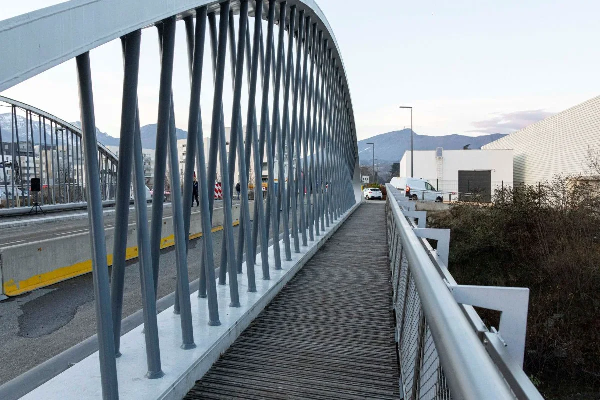 Posé en 2021 au-dessus de la Leysse, l’ouverture du pont Aristide Briand constitue une avancée majeure pour la circulation du secteur centre-nord de Chambéry. Véritable pièce maîtresse du futur plan de mobilité, il facilite l’accès du quartier Vetrotex à la voie rapide urbaine, aux pistes cyclables et au centre-ville.
