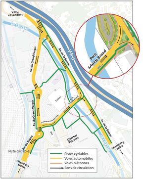 La circulation a été modifiée au niveau de l’avenue du Grand Verger, désormais barrée avant le giratoire. Pour accéder à la VRU depuis le centre-ville et emprunter le nouveau pont, il est désormais nécessaire de rejoindre l’avenue du Repos depuis l’avenue du Comte Vert ou l’avenue Jean-Jaurès.