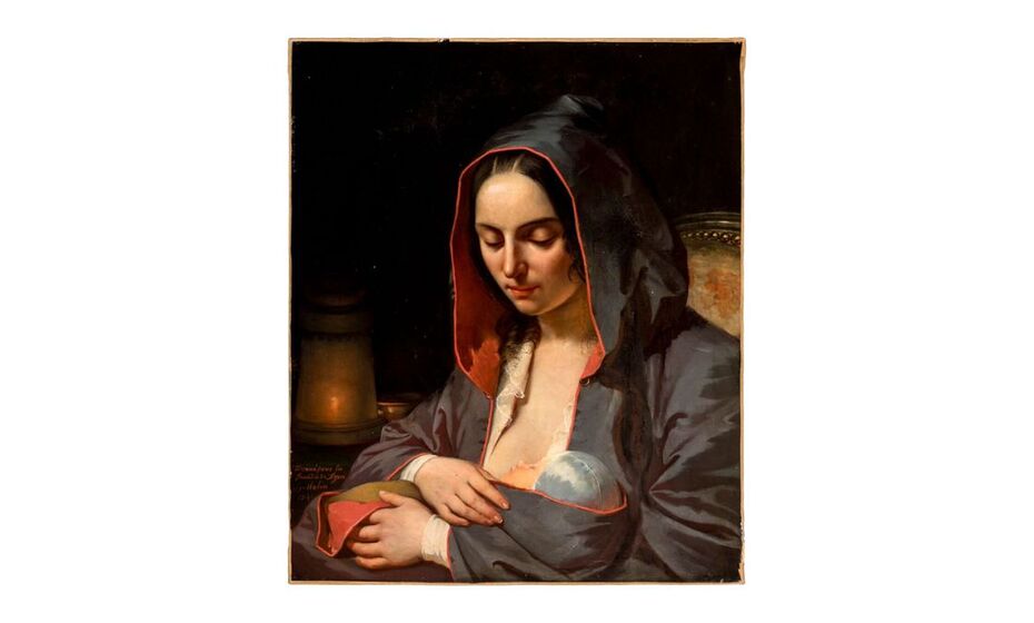 Cette œuvre de jeunesse de Benoît Molin représente une mère tenant son enfant. Elle s’inscrit dans une série de peintures à caractère caritatif réalisées après une catastrophe naturelle survenue à Lyon en 1840. Elle a été acquise par les musées de Chambéry en 2023 lors d’une vente aux enchères organisée par la maison Conan Belleville.
