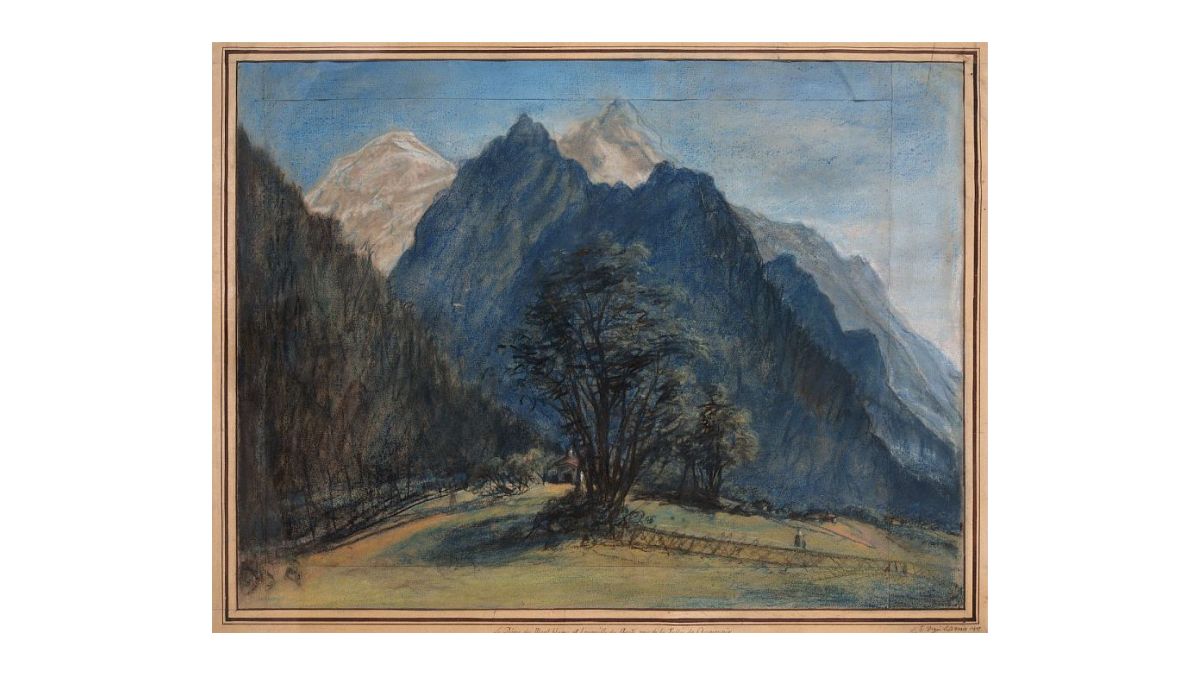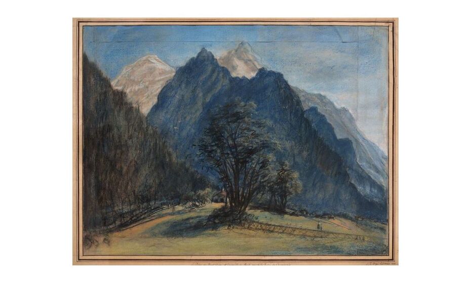 Rare paysage de la pastelliste Élisabeth-Louise Vigée Le Brun, cette œuvre a été présentée lors de l’exposition « L’adresse au paysage. Figures de la montagne de Jean-Antoine Linck à Marianne Werefkin » du 12 mai au 5 novembre 2023 au musée des Beaux-Arts de Chambéry.