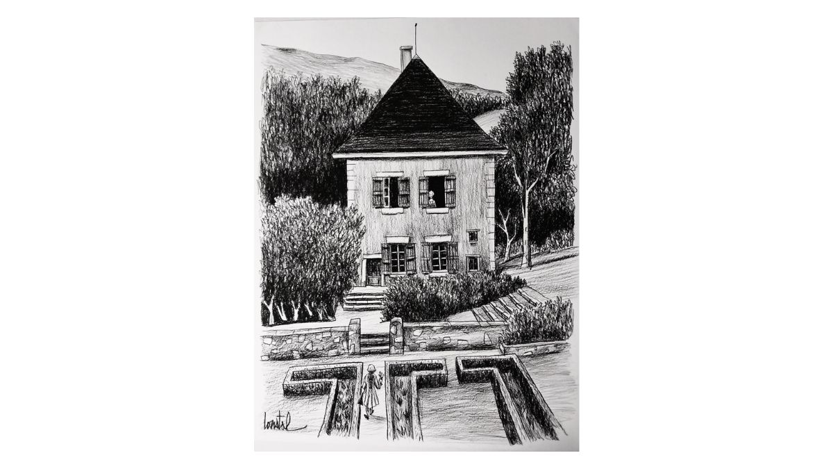 La toile 10e promenade évoque la rencontre de Rousseau, au sortir de l’adolescence, avec Madame de Warens, ainsi que le bonheur des années passées avec elle à Chambéry, dans la maison des Charmettes.