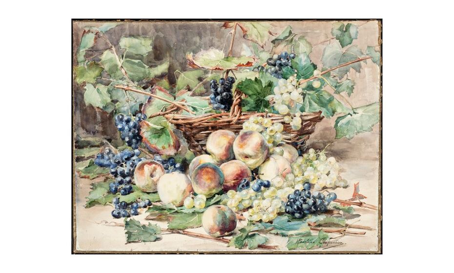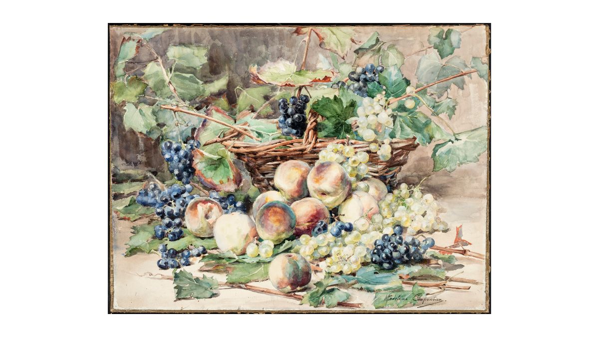 - Musée de Bourgoin-Jallieu : « Artistes Pluri’elles » du 2 décembre 2021 au 30 avril 2022 / Madeleine Carpentier, Pêches et raisins, quatrième quart du 19e siècle, aquarelle sur papier, inv. M 593